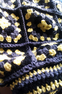 I think on reflection I would have done better to find myself a chunky or aran-weight cashmerino to do this job. Preferably chunky because those squares all came up pretty small with this near-aran weight yarn from Sirdar. In fact, I had to make three more for what I would regard as a minimum size for a 'throw'. It's 5 squares by 3 now and nearly complete. I wasn't at all happy with the way the squares are joined (though they are looking better now I've steamed it a bit on the ironing board) particularly where four squares meet at the corners. I'm even considering making some flowers to stitch over them I'm so unconvinced. But you know, 5 squares by 3 squares is turning out to be an irritating number simply because you can't satisfactorily fold the thing. It doesn't sit right in quarters because you are folding squares instead of joins. And if you fold on joins it just looks like a strip or a pile of squares. Not easy to drape about anywhere looking casually beautiful.![]() |